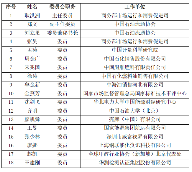 附:石油流通行业标准化技术委员会委员名单